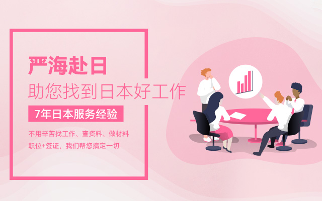 嚴海赴日(workinjapan.cn)是專業的赴日工作服務平臺,是大連嚴海人力資源有限公司旗下品牌。主要提供日本就職(工作簽)/日本留學(半工半讀),等最新工作信息和資訊,為想赴日工作的小伙伴們提供專業的、一對一的咨詢,為您職業生涯規劃、永居辦理、在日期間換職、轉換簽證等方面提供支援。